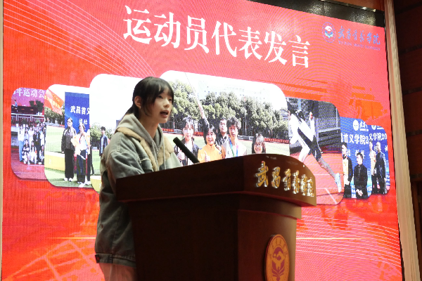 拼搏者的坚韧: 男子运动员代表、大四学生杨胜分享了他三次代表学院出征的历程,讲述了荣誉背后持之以恒的付出与坚守。女子运动员代表、25级专升本胡丹同学则动情地分享了她的故事:她在女子400米项目中勇夺桂冠,却在200米决赛的最后一步意外摔倒,与冠军失之交臂。然而,她乐观面对结果、尽情享受比赛过程的态度,完美诠释了“超越胜负”的体育精神,赢得了全场最热烈的掌声。