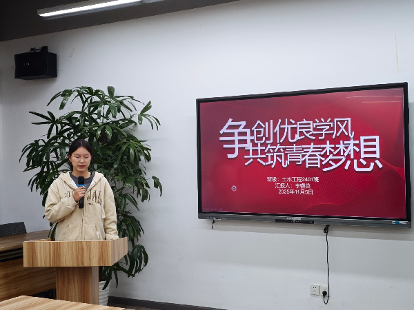 来自不同年级的10个候选班级围绕学习制度建设、学业成绩提升、学术科技活动、互助学习模式、课堂纪律与考风等多个方面,全面展示了班级在创建优良学风过程中的扎实举措和显著成效。生物工程zsb2402班重点介绍了班级在学风建设上的创新做法,通过实施高分段同学“1+2”帮扶机制、固定晚自习座位、期中前后组织集体串讲等方式,营造了“比、学、赶、帮、超”的浓厚学习氛围,班级平均成绩显著提升。环境工程2301班则突出专业特色与学风融合,鼓励同学积极参与学科竞赛和科技创新项目,将专业学习与实践创新紧密结合,班级成员在多项校级、省级以上竞赛中获奖,展现了扎实的专业素养。工程造价2401班注重学习管理与过程监督,通过制定班级学习公约、建立课程笔记共享库、定期开展学习经验交流会等形式,有效提升了整体学习效率与凝聚力。