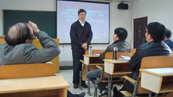 首先,全体辅导员就各自工作中学生存在的问题、工作感受、创新工作方法等进行了交流。院分团委书记魏娜老师就职业定位的问题进行了讲解,结合大家熟悉的学生的例子指导大学生如何进行职业定位。王爱琴老师通过最近地震引发核危机的新闻,对大学生应有的素质和文明作了一次剖析,指出国民素质与大学生教育的重要关系,并且对如何提高大学生的素质提出了几点建议。王静老师针对这段时间机电与自动化学院发生的学生轻生事件,作了一次《阳光心态,灿烂人生》的周讲评,号召大家应该用积极的心态面对生活。周鹏老师则在新生教育问题上,联系自身经历,告诫学生们应如何注重自身健康、提高生活自理能力以及合理规划大学生活等。徐翔宇老师就各方面的安全问题送给即将离校的大四学生,希望他们以后一切顺利。