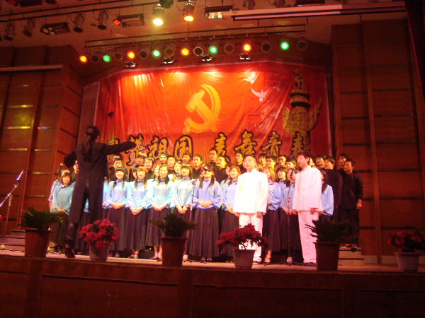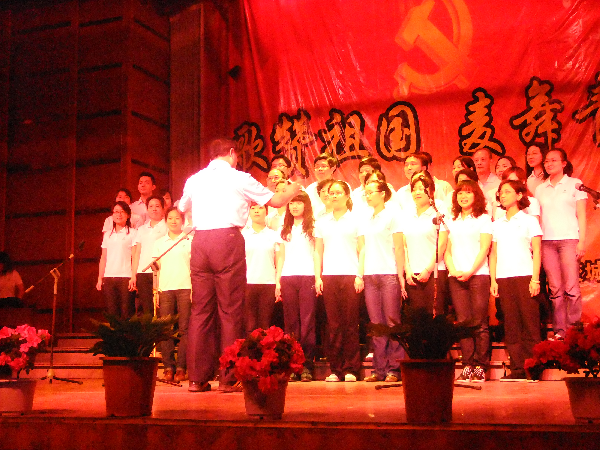 比赛正式开始前,城市建设学院院长袁海庆教授首先致开幕词,勉励各位同学继承并发扬民族精神,争取早日成为国家栋梁。随后,大赛在我院全体教职工的一曲《东方红》中拉开了帷幕,伴随着优美的旋律,各位老师激情澎湃,唱出了对祖国的热爱,场下掌声如潮。《咱们工人有力量》.《爱我中华》.《保卫黄河》,高亢、激昂、充满激情的歌曲,唱出了他们对伟大祖国的热爱和美好祝愿。08级工管、生物、环境、给排水队的一曲《十送红军》将整场红歌会推向了高潮,歌曲充分展现了改革开放新时期,共产党带领人民群众攻坚克难、创造美好生活的伟大历程。《乌苏里船歌》《祝福祖国》《歌唱祖国》......优美动听、气势磅礴,使在场的观众受到震撼,享受了一场视听盛宴。