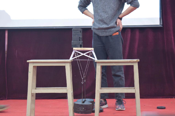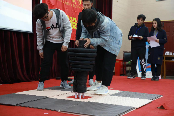 各参赛小组需使用比赛方提供的材料,制作符合赛题的纸桥模型,进行加载,最终选出承重更多并且质量更轻的一组模型。评分主要包括模型设计理念分、结构分、加载分三部分。加载分由承重重量和模型重量比值决定,要取得好的成绩,模型自身重量也不易过高。因此模型的制作不仅要考虑到结构的合理性,手工的精细也是十分重要的,通过此活动能进一步培养同学们的团队配合能力和动手能力。