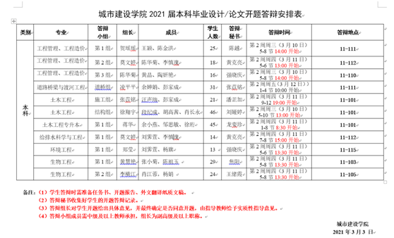 3月8日召开毕业设计(论文)开题工作布置会,会议由副院长莫文婷组织,系主任、专业负责人及各专业毕业设计工作负责人参加。会议特别强调各指导教师对开题阶段的过程指导,对学生开题材料的外文翻译、开题报告的撰写质量把关。本学期第二周由城建学院共8个专业11个答辩小组组织并完成了开题答辩工作,共251名学生顺利通过开题答辩。