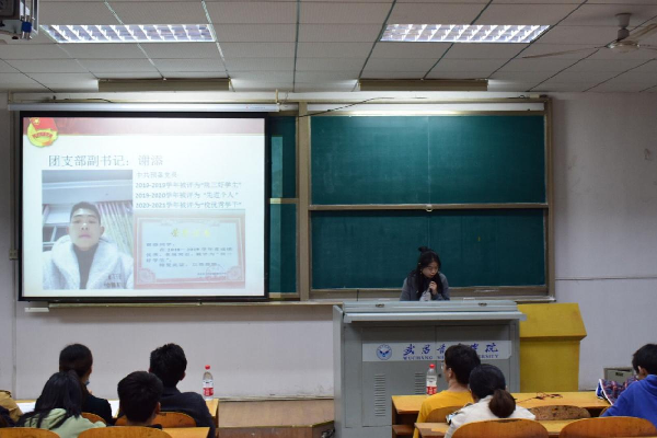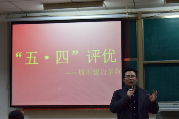 为纪念“五四”青年节,进一步加强团的建设,增强共青团组织凝聚力和战斗力,充分发挥共青团组织自身优势,调动广大团员青年的积极性,积极响应校团委号召,城市建设学院于4月14日下午六点半在11-211教室召开了“五四评优大会”,对在过去一年中表现突出、具有模范带头作用的先进团支部和主题鲜明、形式创新的特色团日活动进行评选,莅临本次评选活动的领导老师有城市建设学院党总支书记林飞书记、分团委书记张晶书记、辅导员老师、王爱琴老师、陈越老师。
