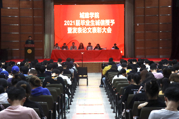 会议伊始,徐翔宇主任上台宣读关于城建学院评定诚信学生的细则及2021届诚信学生的表彰决定,莫文婷副院长宣读关于学生发表论文的表彰决定。