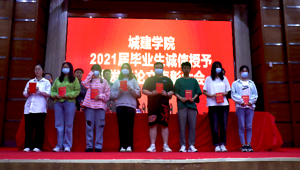 会上,随着激昂的奏乐声响起,颁奖仪式正式拉开帷幕。在座领导们起身为获得“诚信学生”称号和发表优秀论文的学生颁奖,并合影留念。