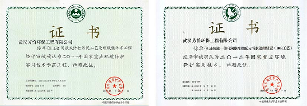 2011年列入《国家重点环境保护实用技术示范工程》,2012年列入《国家重点环境保护实用技术》;