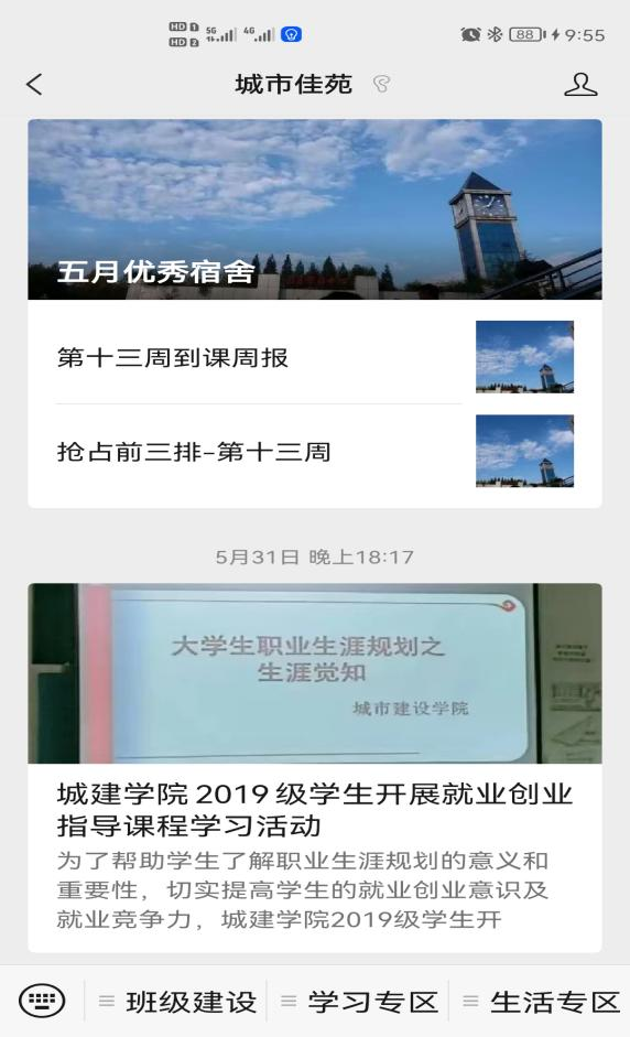 辅导员张晶通过在2019级学生中搭建微信公众号平台,分享每周各班到课周报表、班团活动、寝室文化等,供班级间学习交流;在学习通构建晚点名课堂,在晚点名中融入就业创业指导课程和形势与政策课程,构建网上教学、课堂教学、实践教学相结合的“三位一体”教学模式,全面提高育人效果。