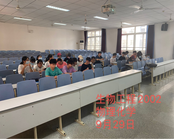 6 | 周二下午七八节 | 生物工程2002 | 物理化学 | 28 | 28 | 100% | 安司琪 张瑞雪 |