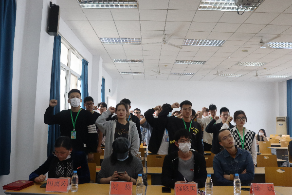 第七届分团委学生会主席吴亚桐介绍了新一届学生会的成员和各部门的情况,并做了新一年的工作展望,他提出以后的工作会以服务学生为中心,以团队建设和宣传工作为重点,坚持做好学风建设、挖掘学院特色,创造品牌活动,接着,在他的带领下,第七届学生会全体成员宣誓。