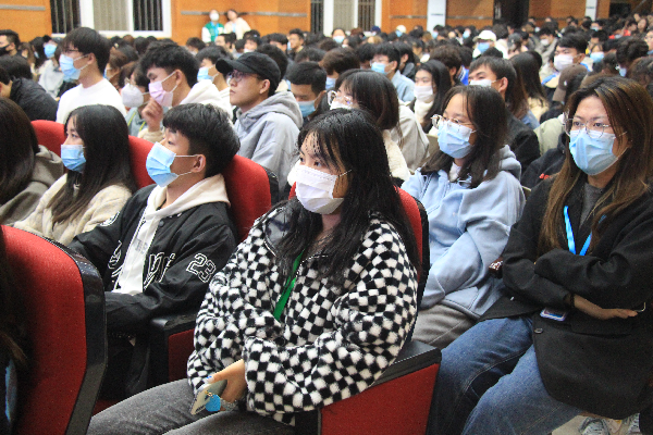 林飞作为主讲人,从“评估的目的和意义”“学生应该怎样做”“向优秀的校友学习”“为党成人,为国成才”这四个方面展开讲述。让广大同学明白评估不仅仅是学校的事情,跟每个同学也息息相关,学校和学生是命运共同体,人人都是评估对象。他也用风趣幽默的语言着重强调了“学生应该怎么做”这一方面。希望广大同学能围绕“十个规范”开心积极地学习和生活,将见到领导、老师要问好;进入电梯要礼让;不吸烟、不染发;课堂认真听讲,做好笔记;宿舍环境要整洁等方面行为规范深入人心。最后他指出,评估不是目的,让学生享受更好的教学条件,保证更高的教学质量才是根本,期望广大同学能借评估之际,提升自我要求,不忘求学初心,做德智体美劳全面发展的新时代大学生。