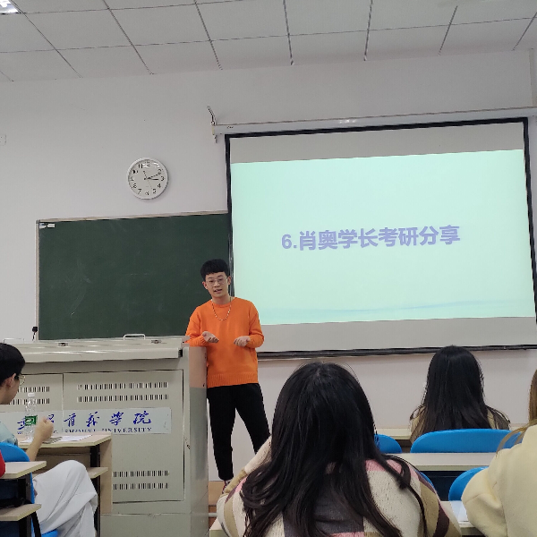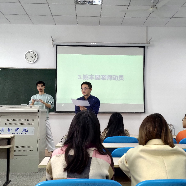 会议初始,校外班主任姚本星老师给大家讲解他对考研的理解,他用风趣幽默的语言向大家传达考研的必要性和重要性,鼓励同学们向更高的学校去奋斗努力。