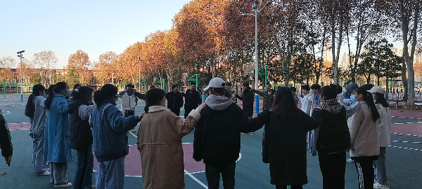 2021年11月24日早上7点20,城建学院20级学生利用早操时间在辅导员老师刘栋与董斌的带领下,在篮球场开展了一次主题为“放飞心灵,快乐自我”的心理拓展活动。