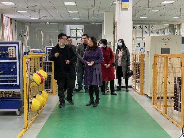 12月6日上午,我院党总支林飞书记、实验与实训中心徐翔宇主任、专业负责人郑莹老师、李慎瑰老师及实验中心全体人员携湖北城铁集团一行十多人前往机电与自动化学院实验实训中心,就校企合作、实验室共建等方面进行学习调研。我院实验与实训中心徐主任、湖北城铁集团吴总经理与机电学院梅主任、卢老师就实验室建设和专业实验开展等进行了深入交流。