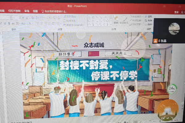 2022年2月22号,学校对中区16栋男生宿舍楼实施疫情封控管理,在封楼期间,为了坚定同学们的抗击疫情信心,凝聚正能量来同心抗疫,辅导员张晶召集城建学院中区16栋男生召开了一次主题为“封楼不封爱,停课不停学”的网络云班会。