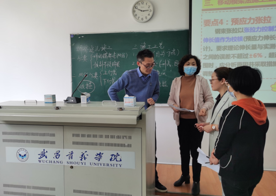 4月19日下午,“课程思政”教学改革示范课程公开课、城市建设学院彭家成老师的《桥梁施工》在成学楼217教室开课。副校长李桂兰,教务处处长张小菊,校级教学督导周金枝,城建学院副院长莫文婷及部分老师现场观摩并与彭老师展开探讨交流。
