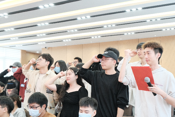 分团委书记张晶带领全体第八届学生会成员进行宣誓,“热爱学生会,忠于学生会,奉献学生会,誓为学生会的发展燃烧自己的青春,贡献自己的力量”,这也是第八届全体学生会成员的工作目标。