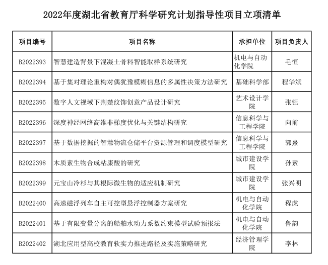 近日,省教育厅下发《关于下达2022年度科研计划项目和高校优秀中青年科技创新团队的通知》,我校共10项科研计划项目和1项科技创新团队项目获批,获批名单如下: