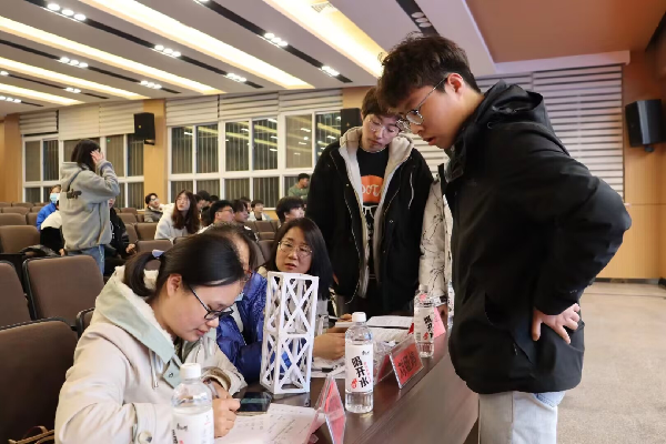 本次比赛主题是“力建木塔,共营匠心。”经过初赛紧张激烈的角逐,共有9支队伍进入决赛。根据比赛流程,参赛者简短陈述制作木塔的过程和想法后,进行现场承重加载演示。评委通过对参赛作品理论方案、作品模型、现场陈述及加载表现给出相应评分。