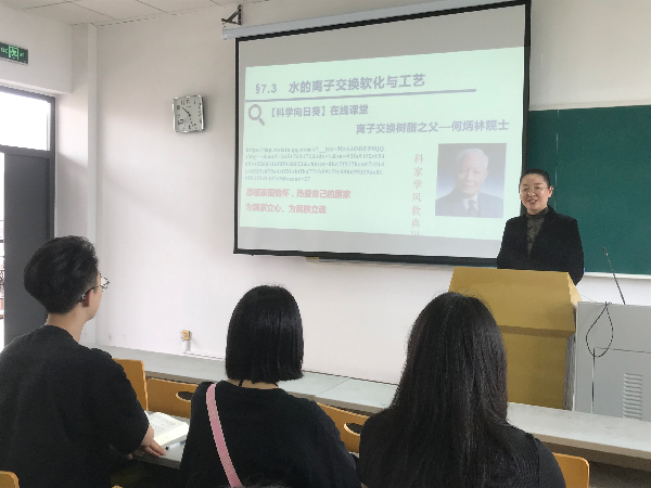 讲授水的硬度时,阐述硬度对生活、生产的影响,其间引入《红楼梦》相关描述和乾隆皇帝的诗词,评价专业观点,学生学习了水文化,树立了社会责任、保障饮用水安全意识。以水的药剂软化法为例,分析药剂软化法的机理,引导学生辩证地分析问题,有利于解决工程问题。通过讲述离子交换树脂,自然过渡到中国离子交换树脂之父--何炳林先生。借助何先生为了祖国事业奋斗一生的报国精神,引导学生厚植家国情怀,热爱自己的国家,为国家立心、为民族立魂。