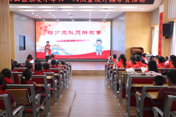 校外中队辅导员代表周明则以六知六会一做为引入带领重温少先队基本知识,将“谈立志”“谈爱国”等信念与自身经历结合讲述给新入队的少先队员,将自身入党初心故事娓娓道来,给少先队员们开展了一场鲜活的党课启蒙。