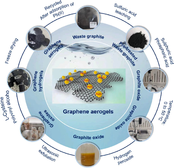 基于资源循环利用的思想,该研究提出将废旧锂离子电池的负极石墨再生制备高效吸附剂石墨烯气凝胶,并用于吸附含铅重金属废水。该成果是环境污染治理及同步资源化团队在国家自然科学基金、湖北省教育科研计划指导性项目等资助、湖北大学分析测试中心和学院大力支持下,于2023年发表的国际期刊论文。目前,该团队是以教授、副教授、博士和优秀本科学生为骨干力量,能够承担重大科研项目和开展学生创新培养的高素质教学科研的团队。后续团队将继续培养学生进行科研实践创新,专业理论知识与项目实践结合,进一步提升教育教学技能和科研水平,积极撰写学术论文,促进高水平成果产出。