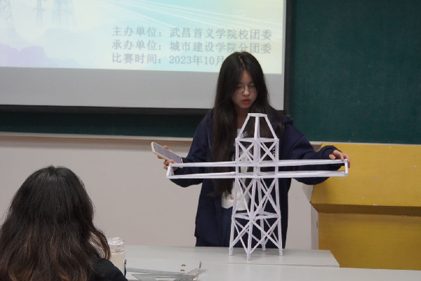 为深入学习贯彻习近平新时代中国特色社会主义思想,贯彻落实党的二十大精神,促进课外学术科技活动蓬勃发展,营造浓厚的校园科技学术氛围,10月18日晚,由校团委主办,城建院分团委承办的第二十届大学生科技学术节之输电塔结构设计大赛初赛在成学楼105教室举行。特别邀请城建学院土木工程专业老师何贝贝,卢晶晶,工程管理专业老师程维担任大赛评委。