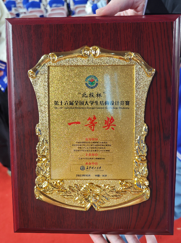 10月26日至29日,“北投杯”第十六届全国大学生结构设计竞赛在长沙理工大学举行。我校城建学院由龚禹菲、刘欣月、张义龙三位学生组成参赛团队,历经四天激烈角逐,以湖北省排名第一,全国排名第三的优异成绩,斩获全国一等奖,再次刷新我校参赛历史成绩!