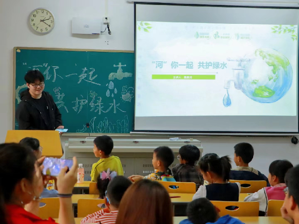 活动伊始,生物2020级施昊鸿从“水资源对人类生存的重要性” “什么是水污染”“怎样保护水资源”和“观察巡司河”四个方面,向小朋友们阐述了保护水资源的重要性,加深了小朋友对水的认识以及巡司河治理和保护成果。
