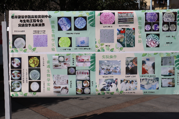 为培养学生实践创新能力,展示学院与社团风采,11月6日下午,城市建设学院实验实训中心与生物工程专业学生在西区广场搭建展台,举行了实践教学成果展。