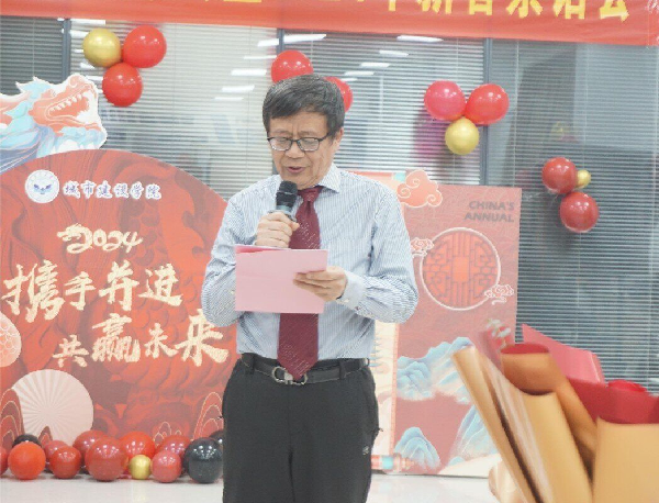 接着,特邀荣誉院长唐友尧教授、原城建学院院长袁海庆教授分别为大家送出了新年寄语,鼓励大家不断提升自身素质和能力,为学院的发展贡献智慧和力量。