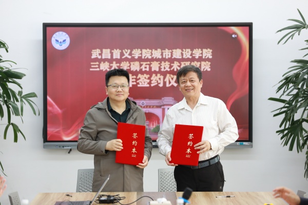 4月12日下午,城市建设学院与三峡大学磷石膏技术研究院科研工作合作签约仪式举行。仪式上,三峡大学磷石膏研究院常务副院长、博士生导师徐港教授受聘为城市建设学院特聘教授。副校长吴波,城市建设学院院长冯仲仁等班子成员出席仪式,师生代表参加。冯仲仁主持仪式。