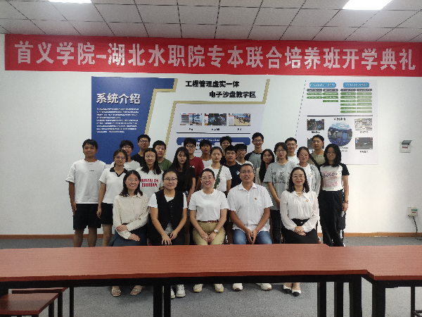 2024年9月25日下午1时30分,湖北省水利水电职业技术学院的3号实训楼内,“武昌首义学院-湖北省水利水电职业技术学院智能建造专业专本联培”开班仪式正式举行。武昌首义学院副院长莫文婷教授及智能建造专业负责人蒋华老师受邀,与湖北省水利水电职业技术学院建筑工程系主任张天俊、专业负责人范艳丽老师等领导与教师代表参加了此次仪式。