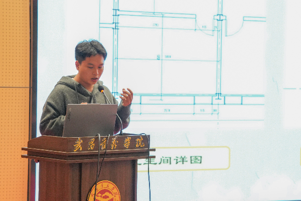 比赛现场,各参赛队依次上台汇报展示。其中,“我们都对组”借鉴悉尼歌剧院外形——形似鸡蛋壳的设计,将现代主义建筑与绿色发展理念相结合,在保证设计更加牢固的基础上,实现了采光充足、静动分离,室内氧吧让同学们在学习的同时,感受到了轻松舒适的氛围;“深藏不露组”将建筑的功能主义、结构主义、环境主义、人文主义四大理念融入建筑模型中,使模型具备了开放性、综合性和全面性,让作品在美观、实用、创新等方面都独具特色;来自机电与自动化学院的“丢球球组”自学相关知识,将“电气”一词的英文首字母“E”作为设计基调,与红楼相结合,弘扬武昌起义精神,令人耳目一新。答辩时,评委老师根据各组展示的内容进行提问,并给予了修改建议。