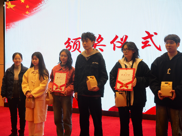 由土木系系主任助理刘娅婷宣读了2023-2024学年度中发挥带头作用,注重团队合作的竞赛优秀学生名单并由郑莹、陈金洪、徐翔宇为获奖学生颁发奖状及奖品。优秀学生代表智能建造2201班毛芷煜、土木工程专升本2303班白雨桐分别发表感言。毛芷煜分别从竞赛介绍、协会介绍、人物事迹与所获奖项、心得与收获、感谢与分享五个方面来为大家介绍城建学院建筑模型协会。白雨桐则结合自身经历,讲述了她因为建筑模型协会走上竞赛道路的故事。白雨桐说:“为备赛省赛,节约时间,吃住在101机房。备赛一年,准确地说1460天,每天从18栋教学楼走到院办的路很长、很安静,一个人总要做点什么来完成自身内核的丰满。”白雨桐在准备竞赛期间不断突破自己、克服困难,最终收获完美与圆满的结局,同时这种精神也感动了现场的师生。