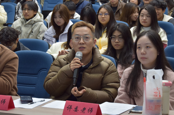 在汇报环节,“XMZS组”从项目概况、设计理念、设计亮点等方面进行了汇报,并在建模中加入无障碍宿舍设计,增加了作品亮点。“那咋了组”采用“六边形”设计,在建模设计中加入“首义红”及国风元素,打造了舒适且安心的寝室环境,获得了评委老师们“立意高”的称赞。“第一梯队组”在建筑设计中加入休闲娱乐区域,追求“透光性、简约性、层次感”,建筑模型呈现出的三个环形紧密相连,构成了一个稳定三角形,寓意着民族团结,同时还注重融合新发展理念,在确保舒适度的前提下,创新升级、节能环保。“无所谓组”的展示通过3D视频渲染,让评委老师及观众对作品有了更直观、更清晰的了解,其设计不仅符合专业的国家标准,还突显了“家的感觉”,并在此基础上融入校徽元素,尽显对学校的热爱。