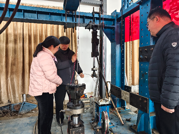 紧接着,胡处长一行又来到“转索鞍-缆索”体系受力行为的试验研究区域。卫教授深入浅出地讲解了该体系在悬索桥结构中的核心地位,以及研究过程中面临的技术难题与突破点。团队利用先进的传感器技术,精准捕捉转索鞍在不同工况下的转动特性、缆索的索力变化规律,这些研究成果将有望优化悬索桥的关键构造设计,提升桥梁的安全性与耐久性。胡处长认真聆听讲解,与卫教授及团队成员展开热烈交流,并对卫军教授团队在悬索桥科研领域所付出的努力和取得的显著进展给予了高度评价。