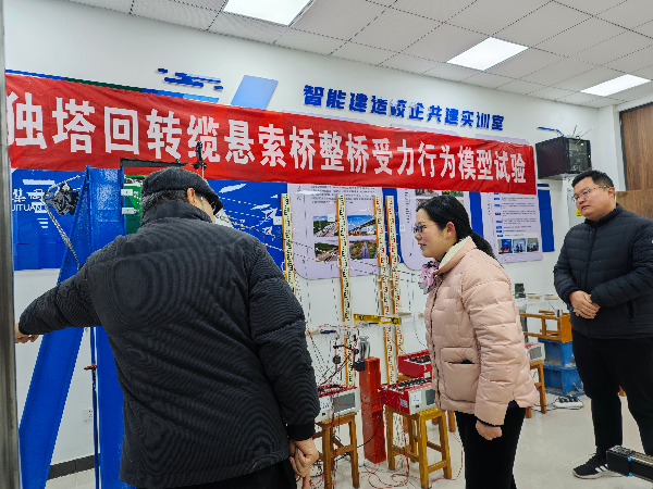 1月10日上午,学校科技处胡处长专程来到学院智能建造实训基地,深入了解卫军教授团队正在全力推进的悬索桥科研项目进展情况。