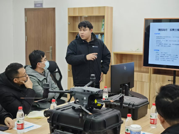 参观结束后,正式培训随之开启。培训主讲人由大疆行业解决方案工程师邬江担任,他以专业的知识和丰富的实践经验,为教师们详细讲解了无人机在多个领域的应用及相关技术知识。邬江工程师通过生动的案例和实际操作演示,深入浅出地介绍了无人机在智能建造、测绘、巡检等方面的优势和创新应用,使教师们对无人机技术有了更深入的认识和理解,为他们在今后的教学中融入相关知识和实践内容提供了有力支持。