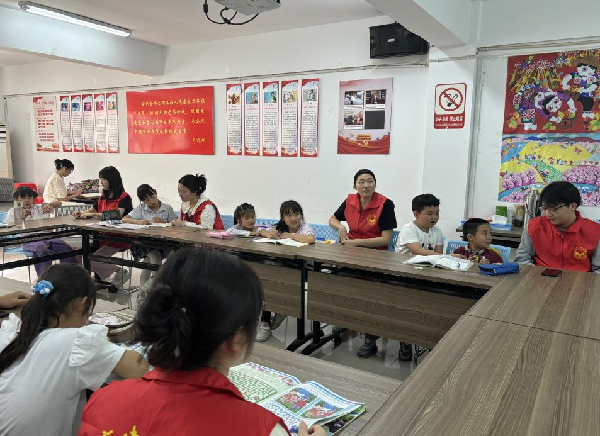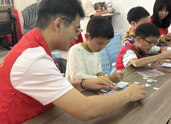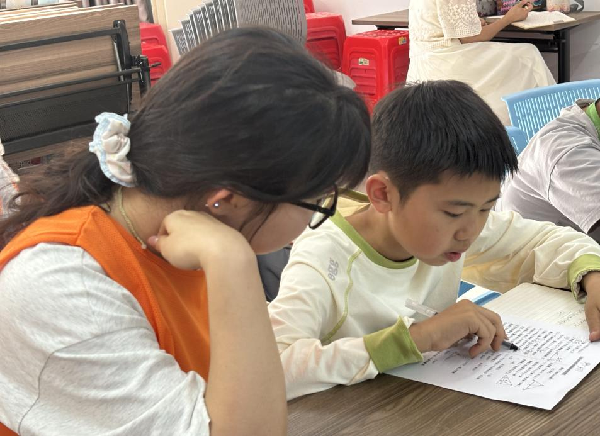 下午4点半,活动正式拉开帷幕。在活动开始的前半小时设置作业辅导环节,既解决家长对孩子课业的担忧,也为后续活动营造轻松氛围。志愿者们化身耐心的引路人,轻轻拉过椅子坐在孩子们身旁,辅导孩子写试卷、家庭作业,在遇数学题中复杂的计算时,志愿者用拆分步骤的方式,将难题拆解成一个个小台阶,用彩色笔圈出关键数据,引导孩子用草稿纸分步演算;陪伴孩子练字时,志愿者俯下身,掌心贴着孩子的手背,带着他们一笔一划的示范书写,感受笔在纸上的提按顿挫,轻声细语讲解"木"字作偏旁时的变形规律。