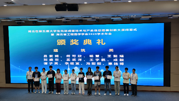 2025年6月7日,从在武汉理工大学举行的第五届湖北省大学生先进成图创新大赛传来喜讯,我院15名学生组成的代表队在建筑类赛道中表现卓越,以个人赛3项一等奖、7项二等奖、1项三等奖,小组赛获2项一等奖、3项二等奖、1项三等奖,累计获得17项奖项的历史最佳成绩,总成绩位列全省高校前列,为学校争得殊荣。