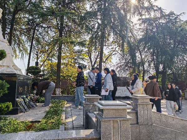 活动首站抵达向警予烈士陵园。教师们集体肃立,向革命先烈默哀致敬,并聆听了向警予同志为妇女解放和革命事业英勇就义的壮烈事迹。全体教师依次向烈士献花,并在烈士墓前重温了入党誓词。