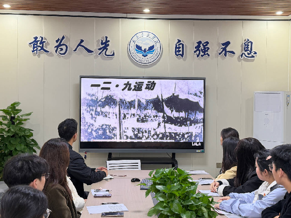 特色实践环节,全体党员观看了《纪念一二九》专题纪录片,通过珍贵史料与生动叙事,直观感受青年学子在民族危亡关头挺身而出、救亡图存的壮志豪情。《抗日救国宣言》拼图竞赛中,各小组党员分工协作、默契配合,在最短时间内还原宣言核心段落,在互动比拼中精准把握文本内涵,在宣言原文诵读中,传递出革命先辈的坚定信念与使命担当。